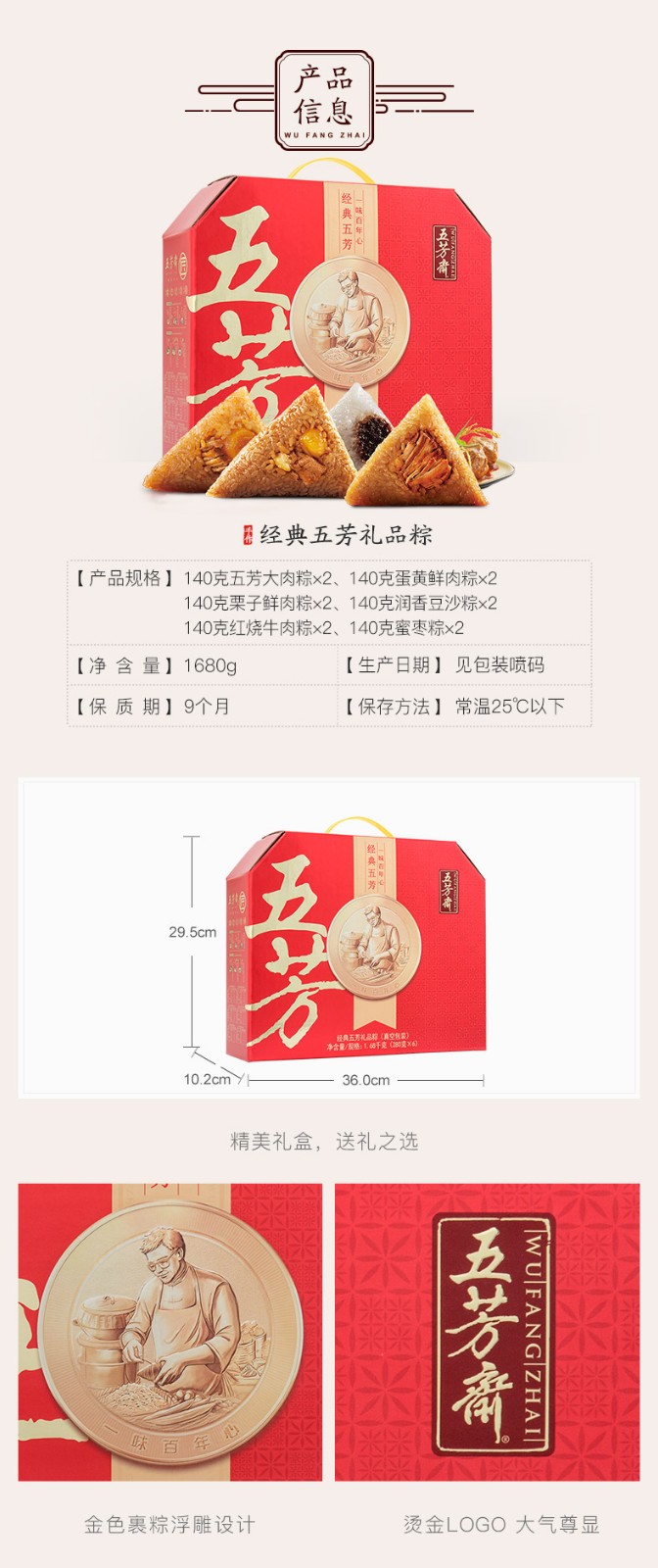 > 五芳斋粽子礼盒 > 经典五芳礼盒粽1680克