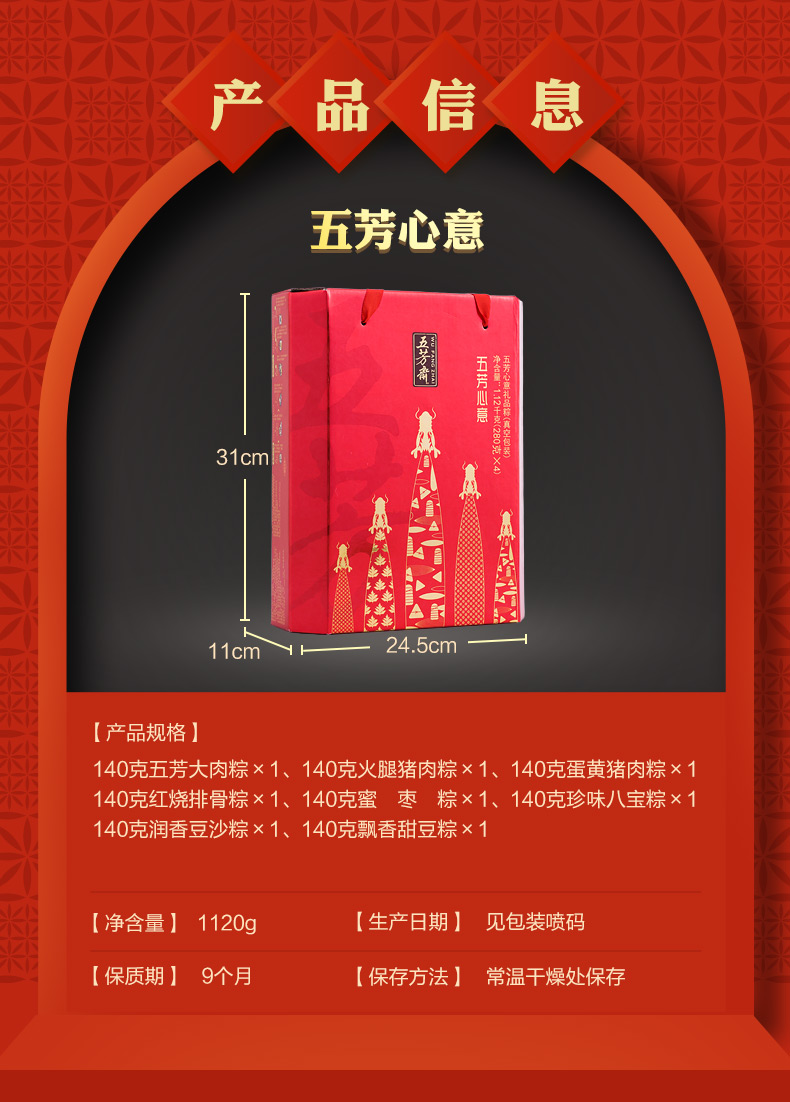 > 五芳斋粽子礼盒 > 五芳心意礼盒粽1120克