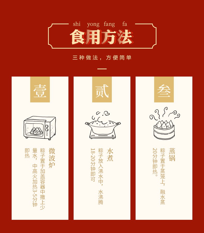 140克润香豆沙粽1只+飘香甜豆粽1只/袋×1袋 140克蛋黄猪肉粽1只+红烧排骨粽1只/袋×1袋 140克五谷粗粮粽1只+真味八宝粽1只/袋×1袋